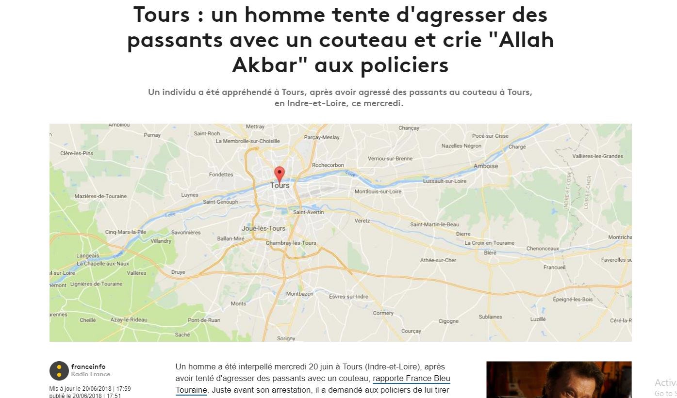 Στη σύλληψη ενός 30χρονου άντρα προχώρησε την Τετάρτη το απόγευμα η Γαλλική αστυνομία στην πόλη Τουρ.