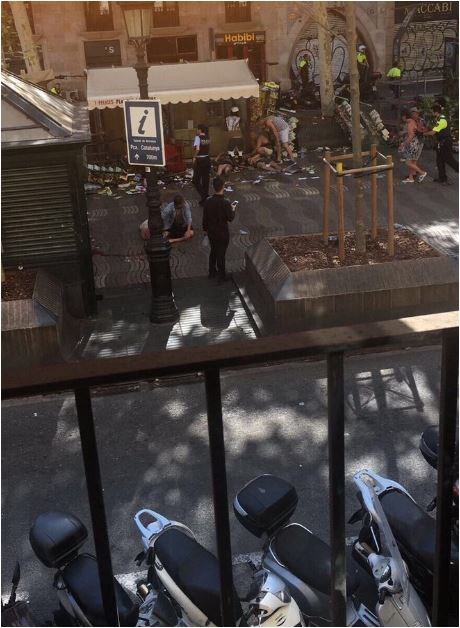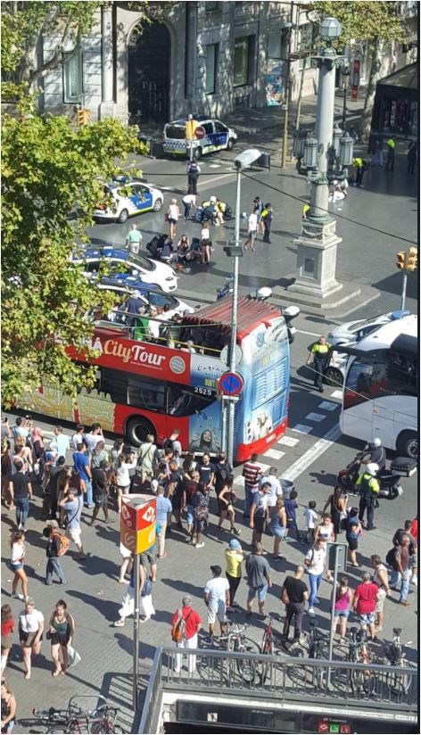Περί τις 17.00 τοπική ώρα, ένα λευκό βαν όρμησε στο πλήθος στη Λας Ράμπλας, την πολυσύχναστη τουριστική κεντρική λεωφόρο της Βαρκελώνης προκαλώντας σκηνές χάους και πανικού μεταξύ του πλήθους.Ο οδηγός του βαν διέφυγε.