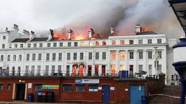 Σύμφωνα με το BBC, η πυρκαγιά ξεκίνησε από το υπόγειο του παραθαλάσσιου ξενοδοχείου Βικτωριανής εποχής της Claremont.