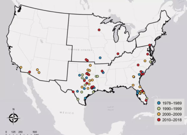 Εντόπισαν συνολικά 85 περιπτώσεις Ν. Fowleri που πληρούσαν τα κριτήριά τους για τη μελέτη (δηλαδή περιπτώσεις που συνδέονταν με έκθεση σε νερό και περιελάμβαναν δεδομένα τοποθεσίας). Κατά τη διάρκεια αυτής της περιόδου, ο αριθμός των περιπτώσεων που αναφέρθηκαν ετησίως ήταν αρκετά σταθερός, που κυμαινόταν από μηδέν έως έξι ανά έτος. Η συντριπτική πλειονότητα των περιπτώσεων, 74, σημειώθηκαν σε νότια κράτη, αλλά έξι αναφέρθηκαν στις μεσοδυστικές πολιτείες, συμπεριλαμβανομένων των Μινεσότα, Κάνσας και Ιντιάνα. Από αυτές τις έξι περιπτώσεις, πέντε συνέβησαν μετά το 2010, ανέφερε η έκθεση.