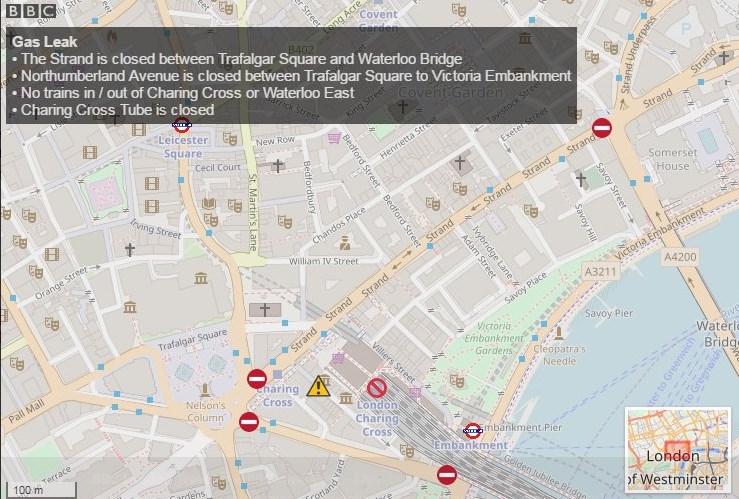Περίπου 1.450 άτομα απομακρύνθηκαν από την περιοχή, όταν εντοπίστηκε η διαρροή στην οδό Craven, λίγο έξω από το Strand, σύμφωνα με την ανακοίνωση της πυροσβεστικής. Οι υπηρεσίες έκτακτης ανάγκης κλήθηκαν στην καρδιά της τουριστικής περιοχής της πρωτεύουσας.