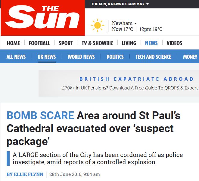 Μία μεγάλη περιοχή γύρω από τον Καθεδρικό ναό του Αγίου Παύλου στο Λονδίνο έχει αποκλειστεί από την αστυνομία, μετά από συναγερμό που σήμανε για την ύπαρξη ενός «ύποπτου πακέτου», αναφέρει η The Sun.