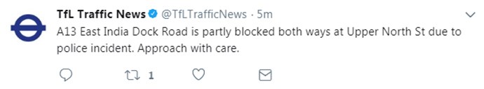 Συναγερμός έχει σημάνει στο ανατολικό Λονδίνο, καθώς σύμφωνα με την επίσημη ενημέρωση από τις αστυνομικές συγκοινωνίες της πόλης είναι σε εξέλιξη «σοβαρό περιστατικό» που αντιμετωπίζουν οι αστυνομικές Αρχές.