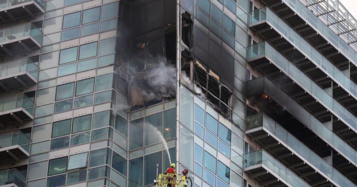 Σύμφωνα με τον δήμαρχο Σαντίκ Καν, έχουν κινητοποιηθεί 20 πυροσβεστικά οχήματα για να κατασβέσουν την πυρκαγιά που εκδηλώθηκε στον 17ο όροφο.
