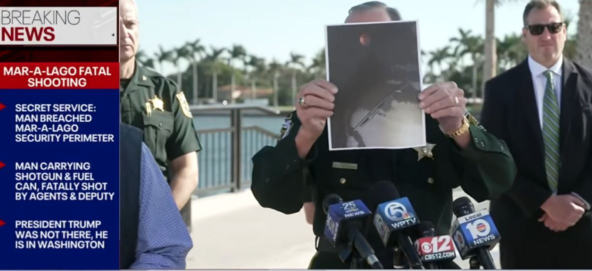 Το όνομα του ατόμου που πυροβολήθηκε δεν έχει δημοσιοποιηθεί. Σύμφωνα με την Μυστική Υπηρεσία, «παρατηρήθηκε από τη βόρεια πύλη του ακινήτου Mar-a-Lago να κρατάει κάτι που φαινόταν να είναι ένα κυνηγετικό όπλο και ένα δοχείο καυσίμου».