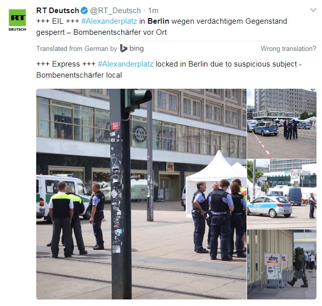 Ένα ύποπτο πακέτο εντοπίστηκε στον σιδηροδρομικό σταθμό Alexanderplatz του Βερολίνου, κινητοποίησε τις Αρχές. Υπό τον φόβο τρομοκρατικής απειλής, εκκενώθηκε ο σιδηροδρομικός σταθμός προκειμένου να γίνουν οι απαιτούμενες έρευνες, όπως αναφέρει το Russia Today.