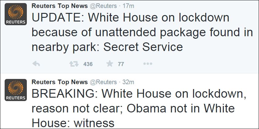 Σύμφωνα με το πρακτορείο, ο πρόεδρος των ΗΠΑ, Μπαράκ Ομπάμα, δεν βρίσκεται στον Λευκό Οίκο.