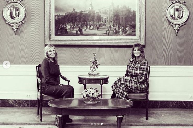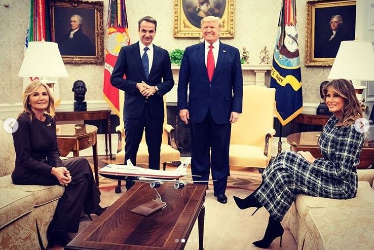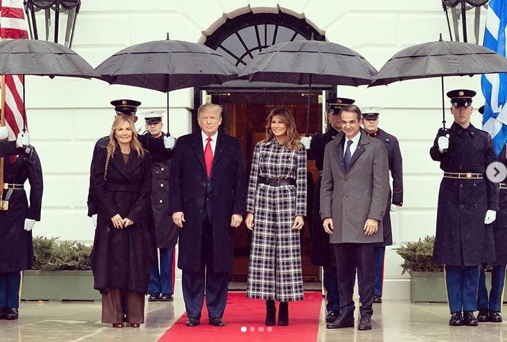 Η Μελάνια Τραμπ «ανέβασε» τέσσερις φωτογραφίες από την υποδοχή που ετοίμασε η ίδια και ο Ντόναλντ Τραμπ στον Κυριάκο Μητσοτάκη και τη σύζυγό του Μαρέβα.«Ο Πρόεδρος Τραμπ και εγώ είχαμε μία θαυμάσια επίσκεψη από τον Πρωθυπουργό της Ελλάδας Κυριάκο Μητσοτάκη και την σύζυγό του στον Λευκό Οίκο χθες», έγραψε η Πρώτη Κυρία των ΗΠΑ και «ανέβασε» τέσσερις φωτογραφίες στο προφίλ της στο Instagram.
