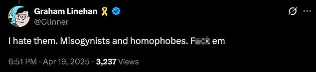 «Τους μισώ. Μισογύνηδες και ομοφοβικοί. Γαμ…ε τους», έγραψε επίσης την ίδια μέρα.