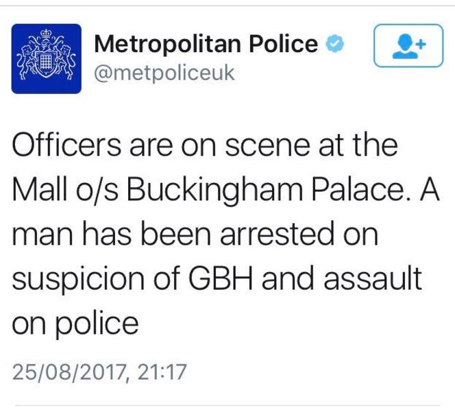 Χρήστες του Twitter έχουν ανεβάσει φωτογραφίες από την περιοχή γύρω από τα ανάκτορα που βρίσκεται υπό αστυνομικό κλοιό.
