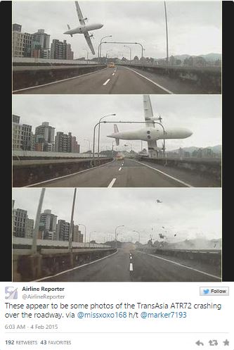 Εμπορικό αεροπλάνο συνετρίβη τα ξημερώματα της Τετάρτης στον ποταμό Keelung στην Ταϊβάν. Στο αεροσκάφος, TransAsia B22816, της εταιρείας TransAsia Airways επέβαιναν 58 άτομα, σύμφωνα με τις πρώτες πληροφορίες.