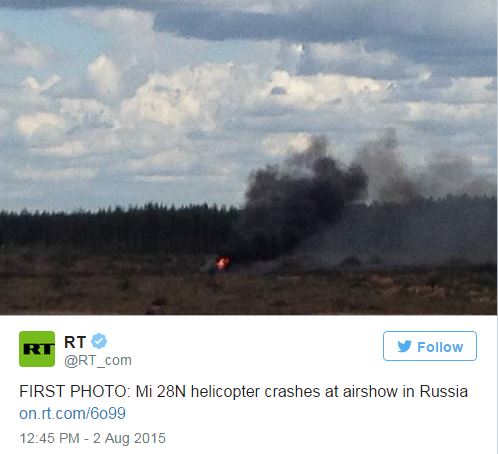 Στις φλόγες τυλίχθηκε ένα στρατιωτικό ελικόπτερο κατά την πρόσκρουση του στο έδαφος, στη Ρωσία. Συγκεκριμένα, το ελικόπτερο τύπου Μi-28N, συνετρίβη κατά τη διάρκεια επιδείξεων για τον διαγωνισμό Aviadarts, στο πλαίσιο των πρώτων στρατιωτικών Ολυμπιακών στη Ρωσία.