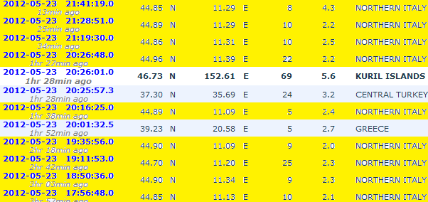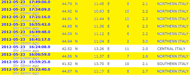 Συνεχής είναι μετασεισμική δραστηριότητα στην Εμίλια Ρομάνια, περιοχή της βόρειας Ιταλίας η οποία επλήγη προχθές από τον ισχυρό σεισμό των 6R.Δείτε πως καταγράφεται η μετασεισμική δραστηριότητα από το Ευρωμεσογειακό Σεισμολογικό κέντρο.