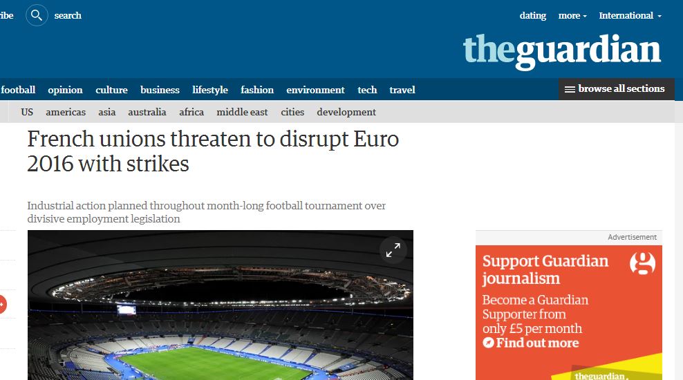 Έπειτα από μία εβδομάδα αναταραχών μεταξύ των διαδηλωτών και της αστυνομίας, τα συνδικάτα ανακοίνωσαν νέες απεργιακές κινητοποιήσεις στον τομέα των μεταφορών, σε 10 γαλλικές πόλεις που θα διεξαχθεί το τουρνουά του Ευρωπαϊκού Πρωταθήματος Ποδοσφαίρου.