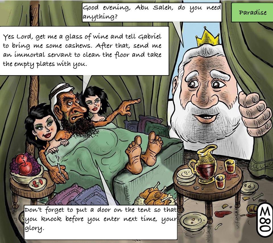 Στις 13 Αυγούστου είχε συλληφθεί μετά τη δημοσίευση στο λογαριασμό του στο Facebook σκίτσου το οποίο σατίριζε τζιχαντιστές του Ισλαμικού Κράτους, εμφανίζοντας έναν γενειοφόρο άνδρα στον παράδεισο, να καπνίζει στο κρεβάτι αγκαλιά με γυναίκες, και να ζητά από τον Θεό να του φέρει κρασί και φυστίκια.
