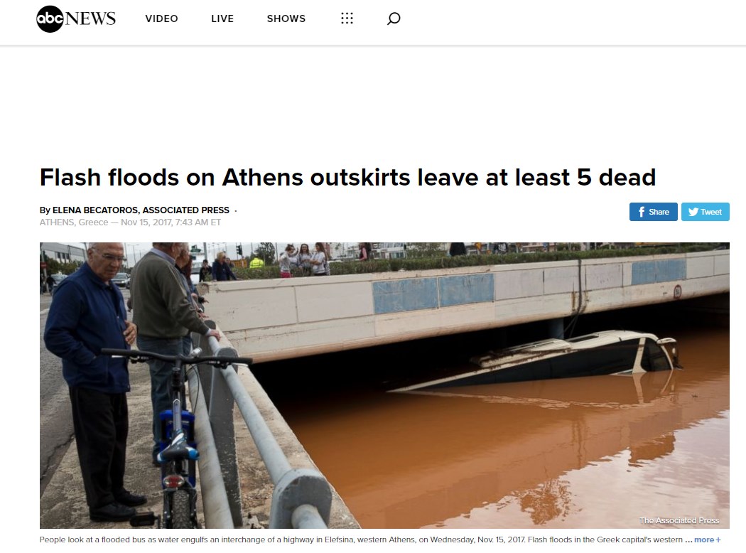Εικόνα βιβλικής καταστροφής από την καταιγίδα που έπληξε τη Δυτική Αττική μεταφέρει και το δίκτυο ABC.