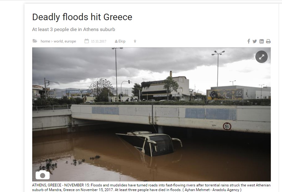 Το πρακτορείο Anadolu μεταδίδει πως οι δρόμοι στη Νέα Πέραμο και τα Μέγαρα έχουν μετατραπεί σε ποτάμια λάσπης. Περιγράφει, επίσης, την εικόνα αρκετών κατοίκων που σκαρφάλωσαν στις στέγες των σπιτιών τους για να γλιτώσουν από την πλημμύρα.