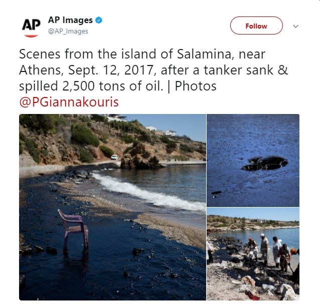 Οι αποκαρδιωτικές εικόνες με την οικολογική καταστροφή από τη ρύπανση που προκάλεσε στη θαλάσσια περιοχή του Σαρωνικού η διαρροή μαζούτ από το δεξαμενόπλοιο «Αγία Ζώνη ΙΙ» που βυθίστηκε τα ξημερώματα της Κυριακής, κάνουν τον γύρο του διαδικτύου με τα διεθνή ΜΜΕ να φιλοξενούν εκτενή ρεπορτάζ.