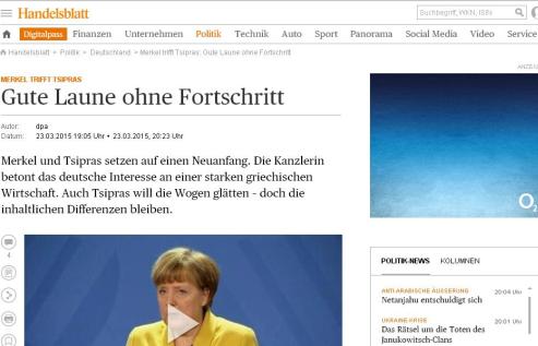 Ιδιαίτερη βαρύτητα πάντως δίνεται στο παρασκήνιο των συζητήσεων και κυρίως στις δεσμεύσεις που η ελληνική κυβέρνηση φέρεται να συζητά όσον αφορά στην αύξηση των ορίων ηλικίας συνταξιοδότησης, στις ιδιωτικοποιήσεις και στην αύξηση του ΦΠΑ. Η εφημερίδα Handelsblatt στάθηκε, ωστόσο, στο γεγονός ότι η καλή διάθεση μεταξύ των δύο ηγετών δε συνοδεύτηκε από καμία ουσιαστική πρόοδο στα θέματα της κρίσης, αφού ο Α. Τσίπρας, αντίθετα με τις όποιες διαρροές από την Αθήνα, δεν δεσμεύτηκε σε συγκεκριμένες μεταρρυθμίσεις κατά την κοινή συνέντευξη.