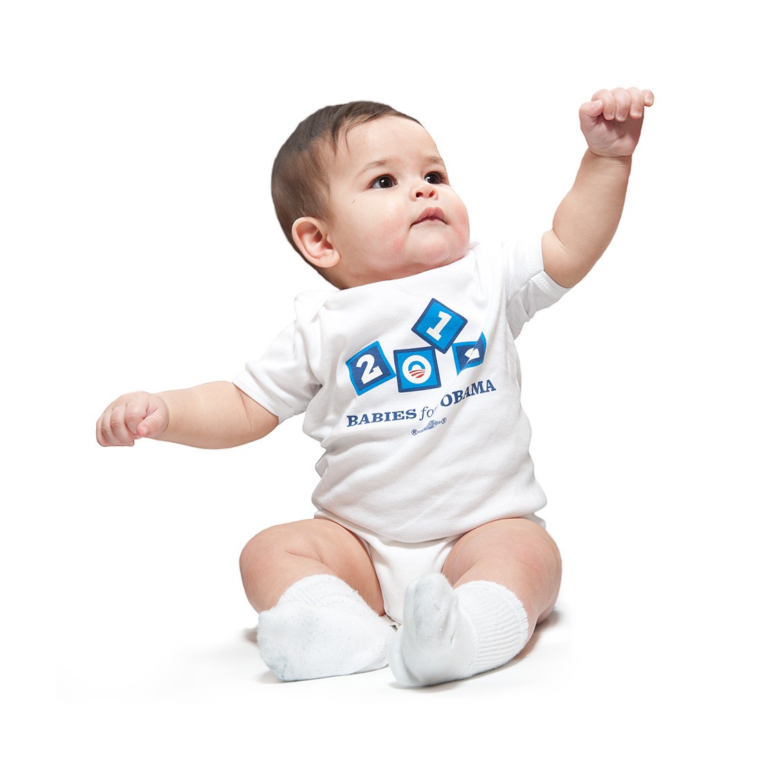 Μπλουζάκια και αξεσουάρ από 100% βαμβάκι, που φέρουν το logo “Babies for Obama”.