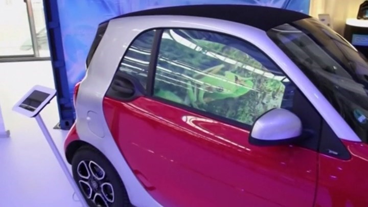 Αυτό που έκανε η εταιρεία ήταν να ενσωματώσει φύλλα γυαλιού υγρών κρυστάλλων σε παράθυρα αυτοκινήτων: Όταν ο κινητήρας λειτουργεί και περνά ρεύμα από μέσα τους, είναι καθαρά και διαφανή, ωστόσο όταν ο κινητήρας παύσει να λειτουργεί, τότε μετατρέπονται σε οθόνες, στις οποίες προβάλλεται βίντεο υψηλής ανάλυσης και εικόνες- ενώ επίσης συνοδεύονται από χειριστήριο το οποίο συνδέεται με το Ίντερνετ.
