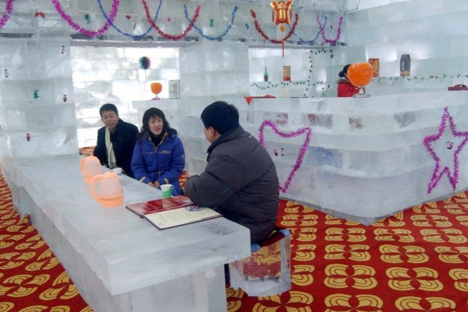 Βρίσκεται στην δυτική Κίνα και είναι φτιαγμένο αποκλειστικά από πάγο! Παγωμένα ράφια, παγωμένα τραπέζια, προσφέρουν στους περίπου 100 πελάτες που μπορεί να εξυπηρετήσει, μοναδικές εμπειρίες.
