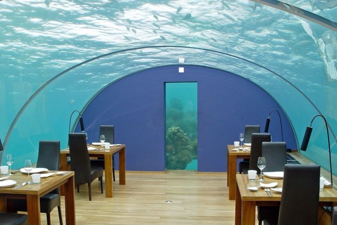 Λίγα μόλις μέτρα κάτω από την επιφάνεια του Ινδικού Ωκεανού βρίσκεται το εστιατόριο Ithaa Undersea στο νησί Rangali των Μαλδίβων.