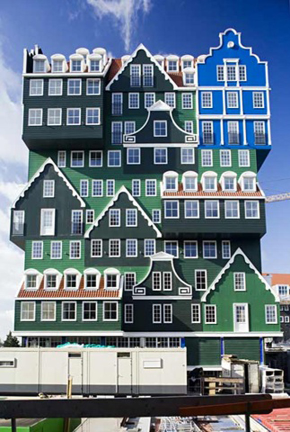 Κολάζ σπιτιώνΤο δωδεκαόροφο ξενοδοχείο Ιντελ περιλαμβάνει 160 δωμάτια και βρίσκεται στο Ζάανταμ της Ολλανδίας .Το κτίριο αυτό κτίστηκε το 2010 και κόστισε 15 εκατ. ευρώ. Η πρόσοψη του αποτελείται από κολάζ παραδοσιακών ολλανδικών κατοικιών.