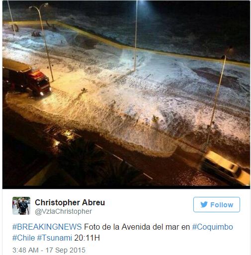 Τα πρώτα κύματα που προκάλεσε ο σεισμός έχουν εισβάλλει στην πόλη Κονκόν, ενώ αναφορές κάνουν λόγο για κύματα ύψους 4,5 μέτρων στην πόλη Κοκίμπο.