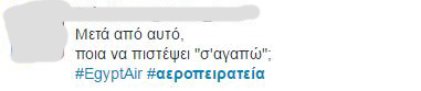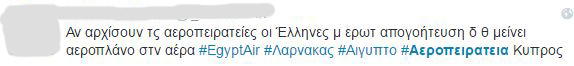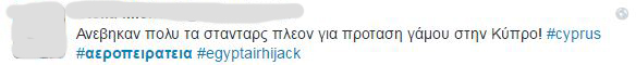 Μπορεί αρχικά όλοι να ανησύχησαν με την είδηση της αεροπειρατείας στην Κύπρο. Μόλις όμως έγινε γνωστό ότι ο Αιγύπτιος προέβη σε αυτή την ενέργεια γιατί ήθελε να παραδώσει μία επιστολή στην πρώην γυναίκα του, το twitter πήρε «φωτιά».