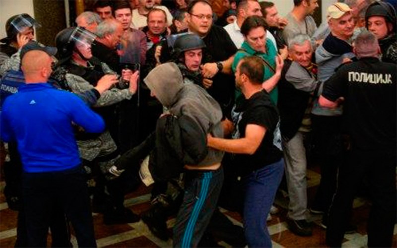Ο ηγέτης του Σοσιαλδημοκρατικού Κόμματος Ζόραν Ζάεφ γρονθοκοπήθηκε και τραυματίστηκε, όπως και 4 ακόμη βουλευτές μετά την εισβολή των διαδηλωτών στην αίθουσα.