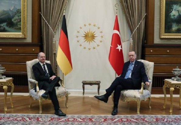 Συνάντηση είχαν ο Τούρκος πρόεδρος Ταγίπ Ερντογάν με τον καγκελάριο της Γερμανίας Όλαφ Σολτς, που επισκέφθηκε την Άγκυρα, στο πρώτο του επίσημο ταξίδι στη χώρα, μετά την εκλογή του τον Δεκέμβριο.