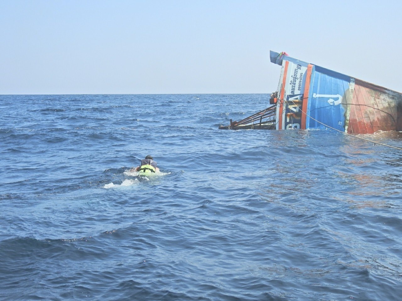 Αφού το πλήρωμα μεταφέρθηκε με ασφάλεια χθες, Τρίτη, από το βυθιζόμενο πλοίο, ένα σκάφος του Πολεμικού Ναυτικού εστάλη επιτόπου για να ελέγξει αν υπάρχει διαρροή πετρελαίου. Όμως οι ναύτες ανακάλυψαν πως μερικά μέλη του πληρώματος είχαν ξεχαστεί.