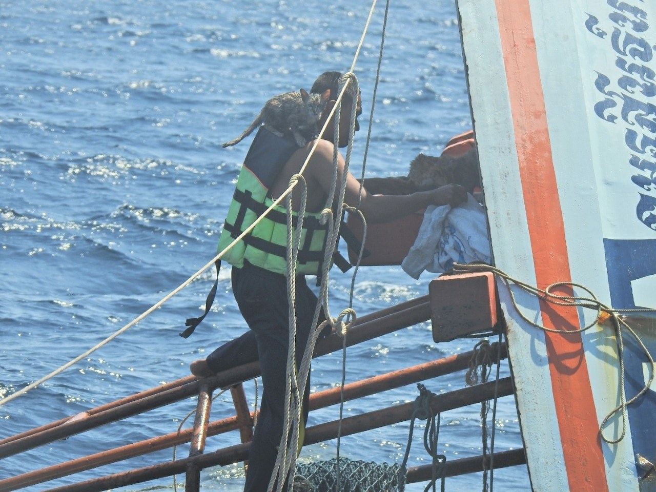 «Έκανα ζουμ με την κάμερά μου στο πλοίο και είδα να ξεπροβάλλουν τα κεφάλια ενός ή δύο γατιών», λέει ο αρχικελευστής Ουίτσιτ Πακντίλον του ταϊλανδικού Πολεμικού Ναυτικού.