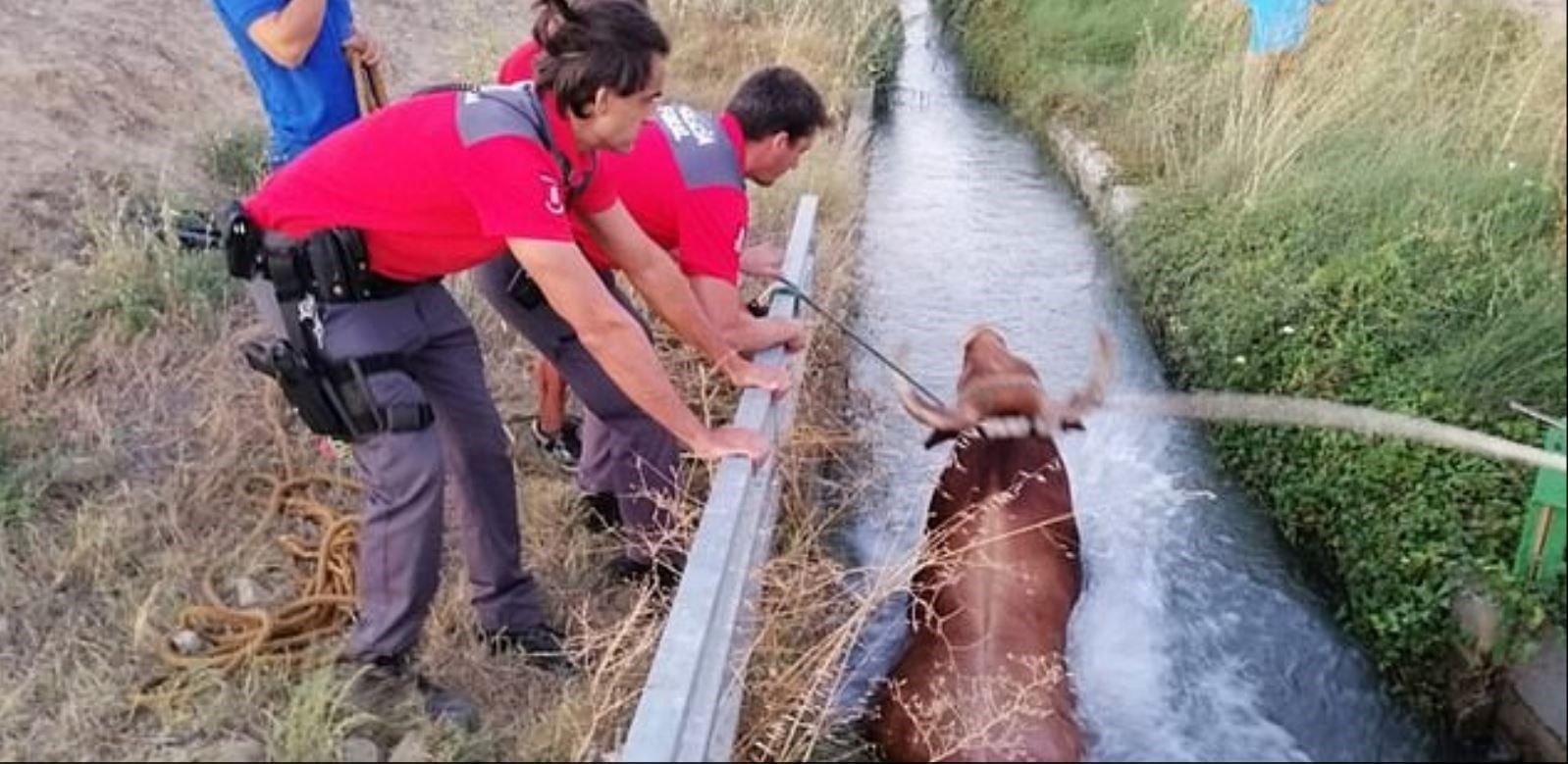 Στη συνέχεια, ο ταύρος βρέθηκε μέσα στον ποταμό Αραγό έξω από την πόλη. Ο ταύρος περπάτησε μέσα από τον ποταμό και τελικά κτηνοτρόφοι και αστυνομικοί κατάφεραν να τον πιάσουν στο κανάλι άρδευσης από τους κτηνοτρόφους και την αστυνομία του, όπου μεταφέρθηκε σε φορτηγό.