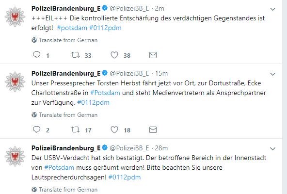 Την ύπαρξη εκρηκτικού μηχανισμού, ο οποίος, εξουδετερώθηκε, στη χριστουγεννιάτικη αγορά του Πότσνταμ επιβεβαίωσε πριν από λίγο η γερμανική αστυνομία.