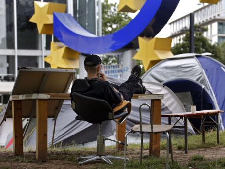 Στις 17:30 (ώρα Ελλάδος) και τα τελευταία μέλη του αντικαπιταλιστικού κινήματος είχαν εγκαταλείψει αυτοβούλως τον καταυλισμό, ο οποίος είχε στηθεί στις παρυφές μίας πλατείας έξω από την έδρα της ΕΚΤ. Μία δεκάδα από αυτούς μόνον, επέλεξαν να καθίσουν μπροστά από το σύμβολο του ευρώ, περιμένοντας από την αστυνομία να τους απομακρύνει, χωρίς ωστόσο να προβάλλουν αντίσταση.Η δημαρχία είχε ζητήσει από τους «αγανακτισμένους» να διαλύσουν τον καταυλισμό τους έως τα τέλη Ιουλίου, με αποτέλεσμα τα μέλη του κινήματος να προσφύγουν στη δικαιοσύνη, ευελπιστώντας σε μία ευνοϊκή απόφαση.Το δικαστήριο έδειξε επίσης κατανόηση στα επιχειρήματα της δημαρχίας για τα προβλήματα υγιεινής στον καταυλισμό, ο οποίος είχε πλημμυρίσει ποντίκια.Το Occupy Frankfurt, όπως και άλλα ομοειδή κινήματα που αντλούν έμπνευση από το αμερικανικό Occupy Wall Street, μάχεται κατά «της εξουσίας του καπιταλισμού, του χρήματος και των τραπεζών». Δείτε το Βίντεο: