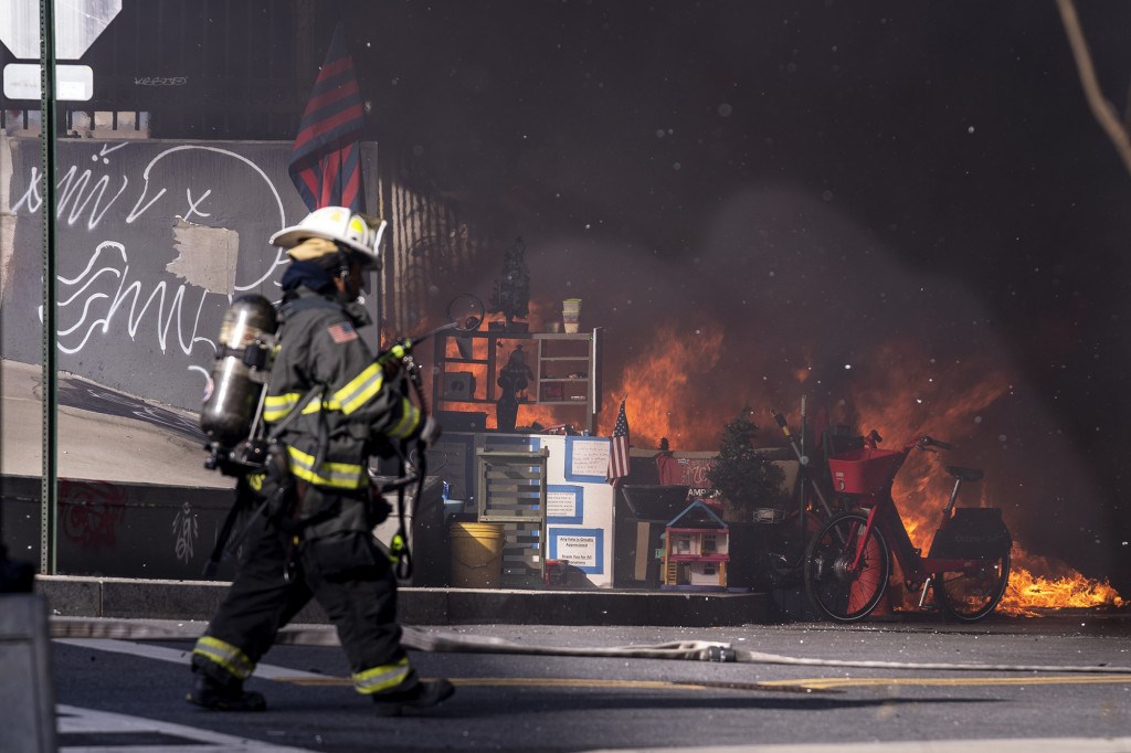 Σύμφωνα με το CNN, η φωτιά εκδηλώθηκε σε καταυλισμό αστέγων σε απόσταση περίπου 1,5 χλμ μακριά από το Καπιτώλιο, σημαίνοντας συναγερμό.