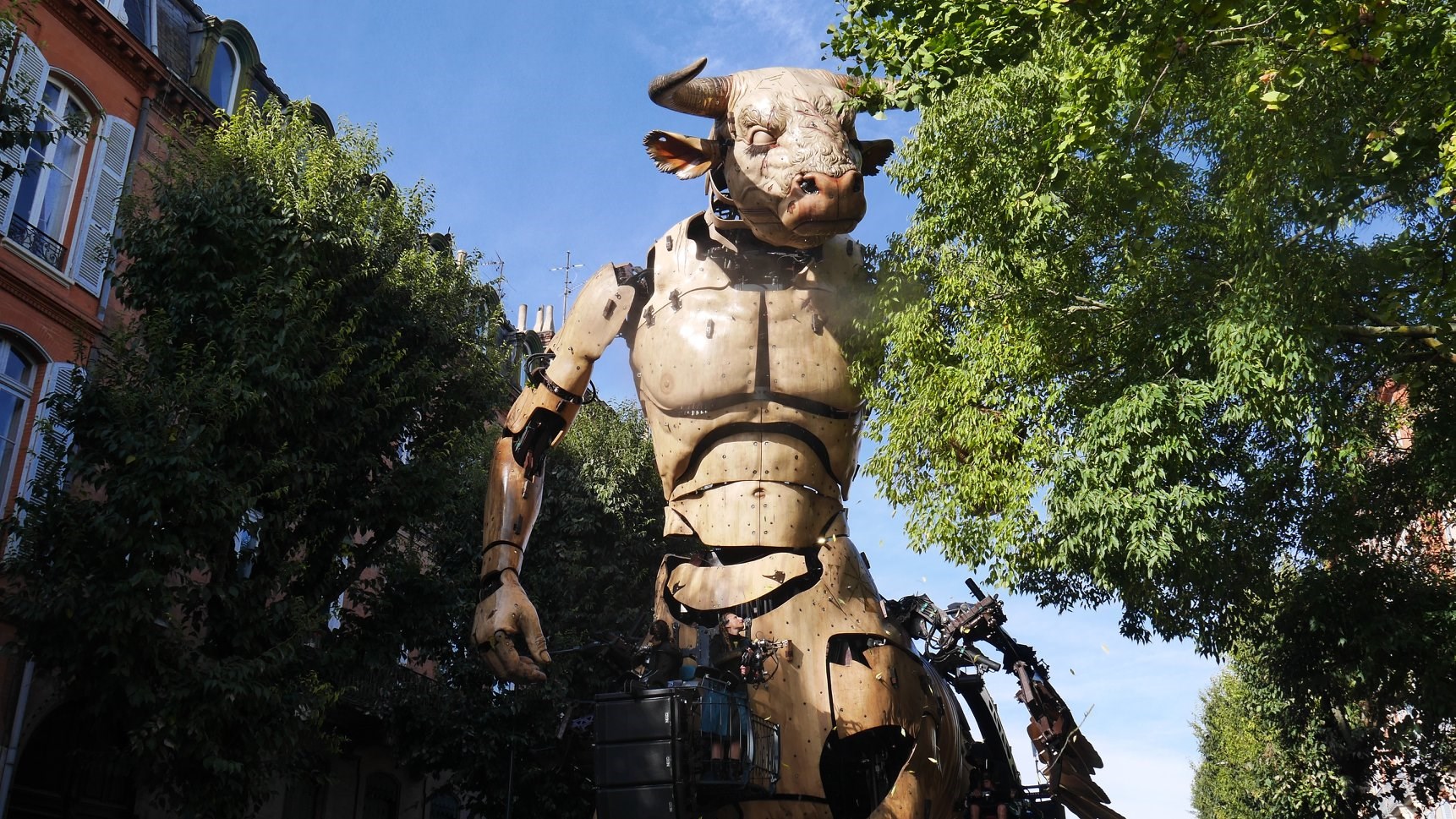 Μηχανικός Μινώταυρος ύψους 14 μέτρων, παρουσιάστηκε στην Τουλούζη. Το ρομπότ έκοψε βόλτες στους δρόμους της παλιάς πόλης, συνοδεία μιας ύψους σχεδόν 13 μέτρων αράχνης-ρομπότ.Οι δύο μηχανές παρουσίασαν μια οπερατική ερμηνεία του μύθου της Αριάδνης, της κόρης του Μίνωα που βοήθησε τον Θησέα να κατανικήσει τον Μινώταυρο. Η παραγωγή φέρει το όνομα «Ο Φύλακας του Ναού» και τα όσα διαδραματίζονται συνοδεύει ζωντανή μουσική.