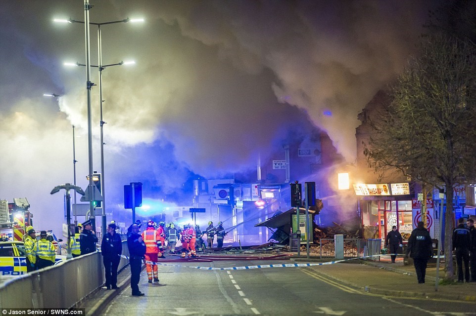 Η έκρηξη που σημειώθηκε χθες το βράδυ σε κτίριο του Λέστερ και η πυρκαγιά που ξέσπασε στη συνέχεια κατέστρεψαν ένα παντοπωλείο που βρισκόταν στο ισόγειο όπως και τη διώροφη κατοικία από πάνω του.