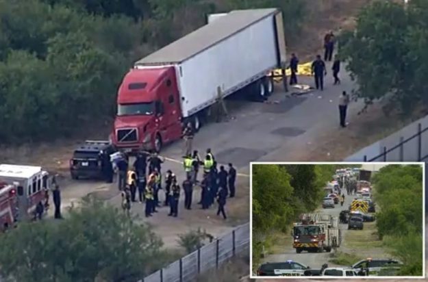 According to emergency personnel, Reportedly an 18 wheeler packed with illegal aliens was found abandoned in the city’s southwestern edge resulting with 42+ dead inside the truck pic.twitter.com/h1PyF6Ud39
