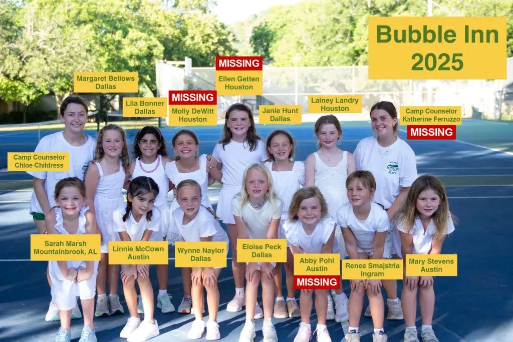 Μία από τις πιο ανατριχιαστικές εικόνες που κυκλοφόρησαν δείχνει 13 κορίτσια και 2 ομαδάρχισσες μπροστά από την καμπίνα «Bubble Inn» στις 29 Ιουνίου, ντυμένες με λευκά φορέματα και αθλητικά παπούτσια, να χαμογελούν πλατιά στον φακό.
