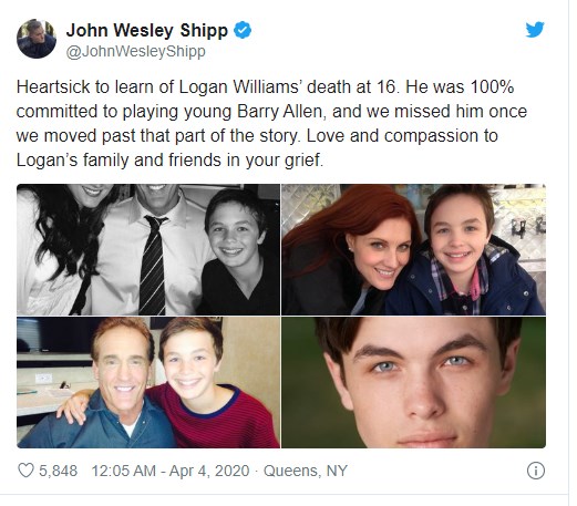 Ο ηθοποιός Logan Williams, ο οποίος ενσάρκωνε τον νεαρό Barry Allen, στην επιτυχημένη σειρά “The Flash” πέθανε ξαφνικά την Πέμπτη σε ηλικία 16 ετών. Δεν έχει γίνει γνωστή η αιτία θανάτου του 16χρονου. Ο πρωταγωνιστής της σειράς, Grant Gustin, έκανε μια ανάρτηση στο Instagram χθες με μια φωτογραφία με τον Williams και τον ηθοποιό Jesse L. Martin, την οποία είχαν τραβήξει στην έναρξη των γυρισμάτων της σειράς το 2014.