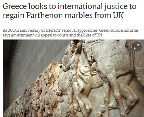 Η Ελλάδα δεν έχει εγκαταλείψει την ιδέα να προσφύγει στη διεθνή δικαιοσύνη για την επιστροφή των γλυπτών του Παρθενώνα από το Μεγάλη Βρετανία, αναφέρει η Έλενα Σμιθ σε άρθρο της στον Guardian.