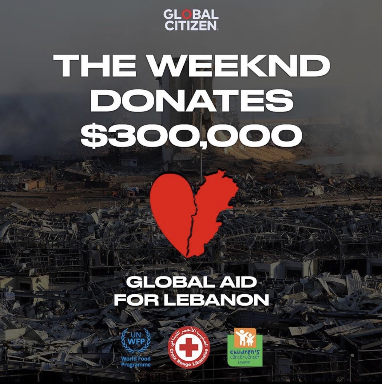 Η δωρεά του τραγουδιστή ανακοινώθηκε από τον μάνατζέρ του, Wassim «Sal» Slaiby. «Είναι μεγάλη τιμή που συνεργάζομαι με καλλιτέχνες που νοιάζονται τόσο πολύ για τον κόσμο και τώρα για τους αδελφούς και τις αδελφές μας στον Λίβανο που υποφέρουν και χρειάζονται τη συλλογική μας βοήθεια» έγραψε ο Slaiby. «Θέλω να ευχαριστήσω τον αδερφό μου @theweeknd για τη γενναιόδωρη πράξη του, τη δωρεά 300.000 στην εκστρατεία Global Aid for Lebanon».