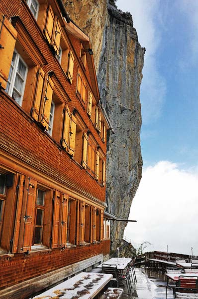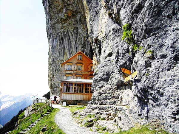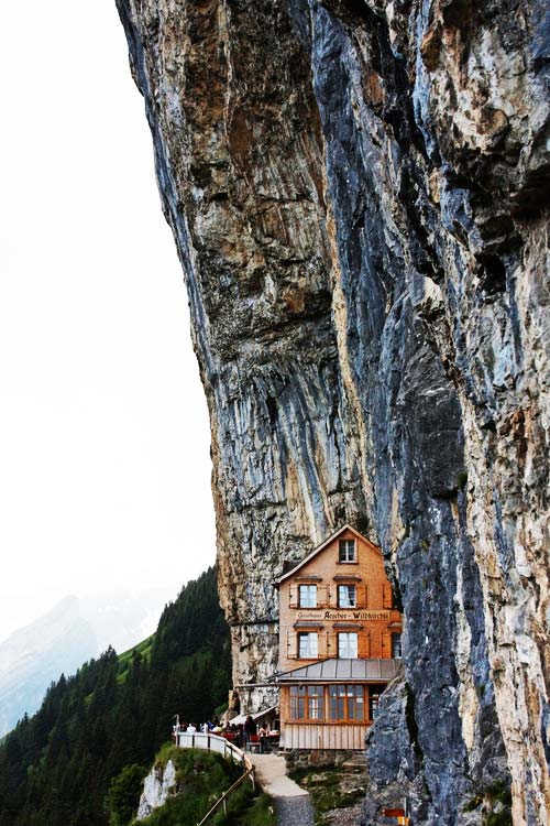 «Σκαρφαλωμένο» στα βράχια είναι το σαλέ «Aescher» στην περιοχή Appenzellerland της Ελβετίας. Είναι φυσικά διάσημο, για τη θέα του, που συγκλονίζει, αφού κατασκευάστηκε κυριολεκτικά στο χείλος του γκρεμού. Η θέα κόβει την ανάσα.
