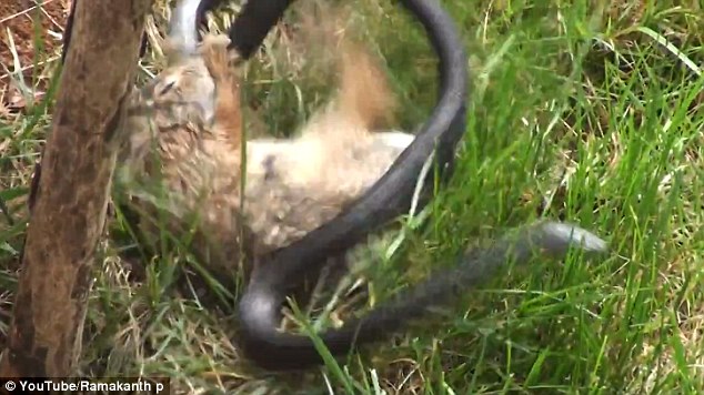 Όταν όμως εκείνη επέστρεψε δεν δίστασε να ορμήσει στο φίδι το όποιο έτρεψε σε φυγή. Όμως δεν σταμάτησε εκεί. Αν και το φίδι απομακρύνθηκε, η θαρραλέα μαμά συνέχισε να το δαγκώνει και να το κλωτσάει.