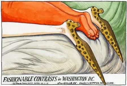 Το σκίτσο φέρει την λεζάντα: Μοδάτες αντιθέσεις στην Ουάσιγκτον