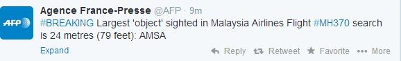 Το μεγαλύτερο από τα δύο αντικείμενα που εντόπισαν οι δορυφόροι και που μπορεί να ανήκουν στο χαμένο μπόινγκ είναι 24 μέτρα, όπως αναφέρει το Γαλλικό Πρακτορείο ειδήσεων.