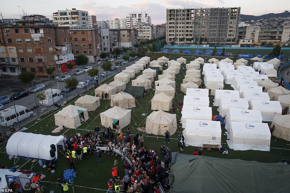 Χιλιάδες άνθρωποι έχουν βρει καταφύγιο στο στάδιο του Δυρραχίου και άλλους προσωρινούς καταυλισμούς στις σεισμόπληκτες περιοχές.